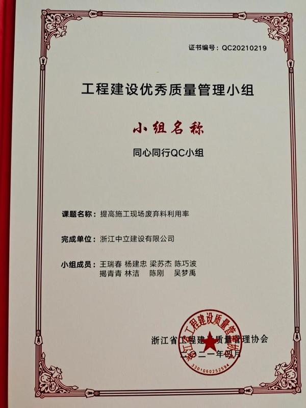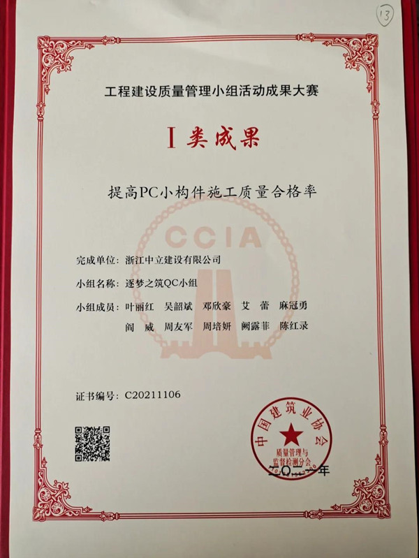 近日,從中建協傳來喜訊,中立公司逐夢之筑QC小組獲工程建設質量管理小組活動成果大賽Ⅰ類成果。今年我公司QC成果取得豐碩成績,另外樹人之心QC小組獲得浙江省優秀QC成果一等獎1項、同心同行QC小組獲浙江省優秀質量管理小組。
