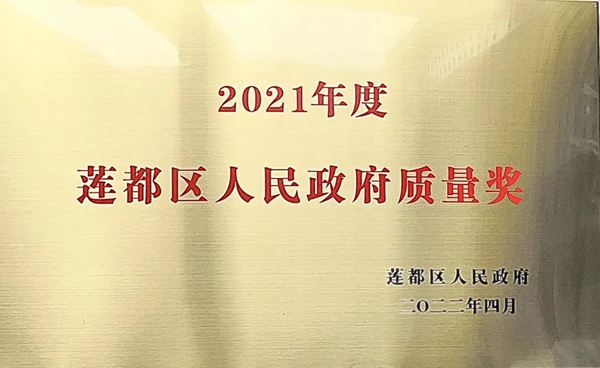 2021蓮都區(qū)政府質(zhì)量獎(jiǎng)