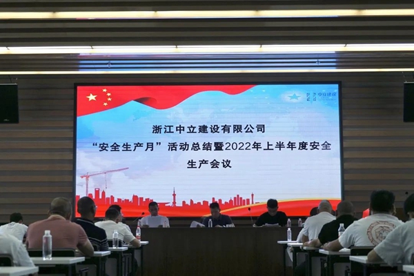 2022年7月8日,浙江中立建設有限公司在公司會議室召開了“安全生產月”活動總結暨2022年上半年度安全生產會議。公司分管安全副總經理吳韶斌、安全部全體人員、項目安全管理人員等共40余人參加了會議。